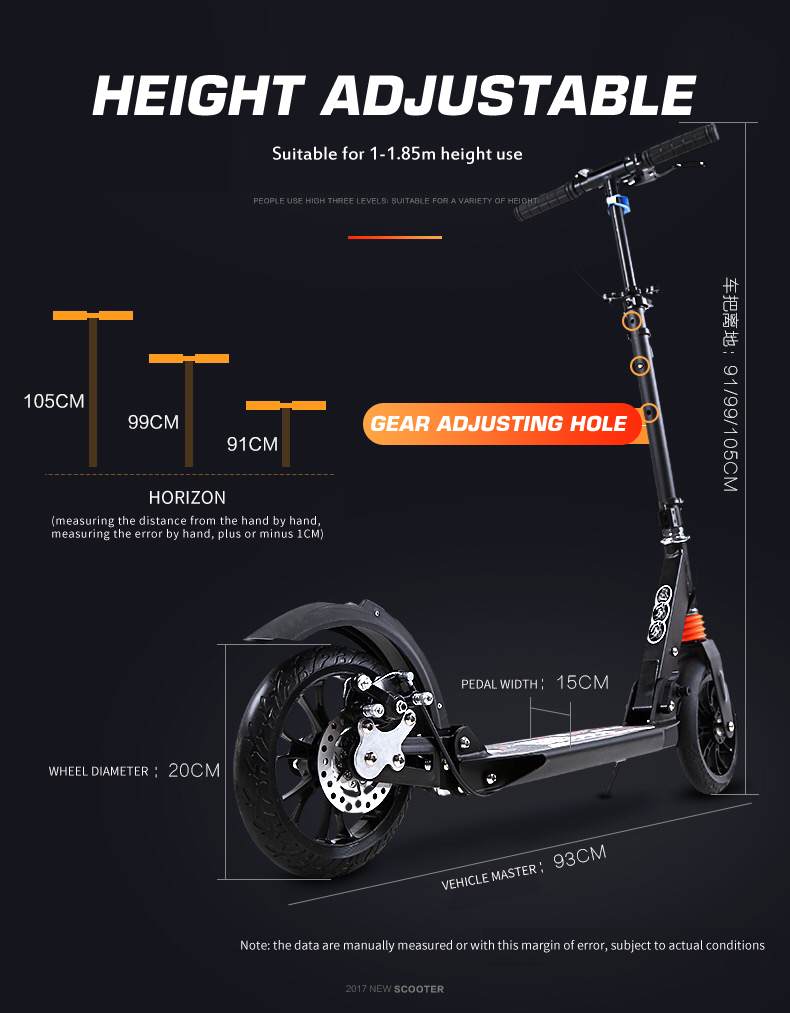 สกู๊ตเตอร์ผู้ใหญ่ 7XL ล้อใหญ่ 200 มม สกู๊ตเตอร์พับPU 2ล้อเพาะกายทั้งหมดอลูมิเนียมการดูดซึมshockเมืองวิทยาเขตการขนส่ง